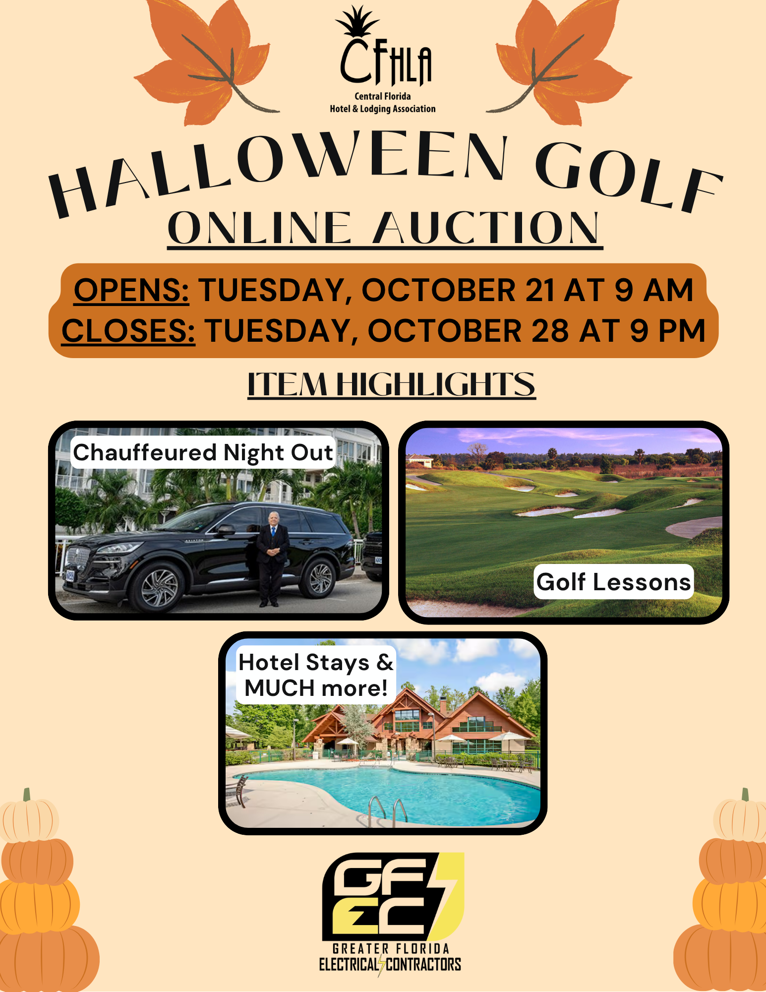 Get ready to bid! The 2025 Halloween Golf Online Auction is just around the corner — opening next Tuesday, October 21 at 9:00 AM and closing Tuesday, October 28 at 9:00 PM.