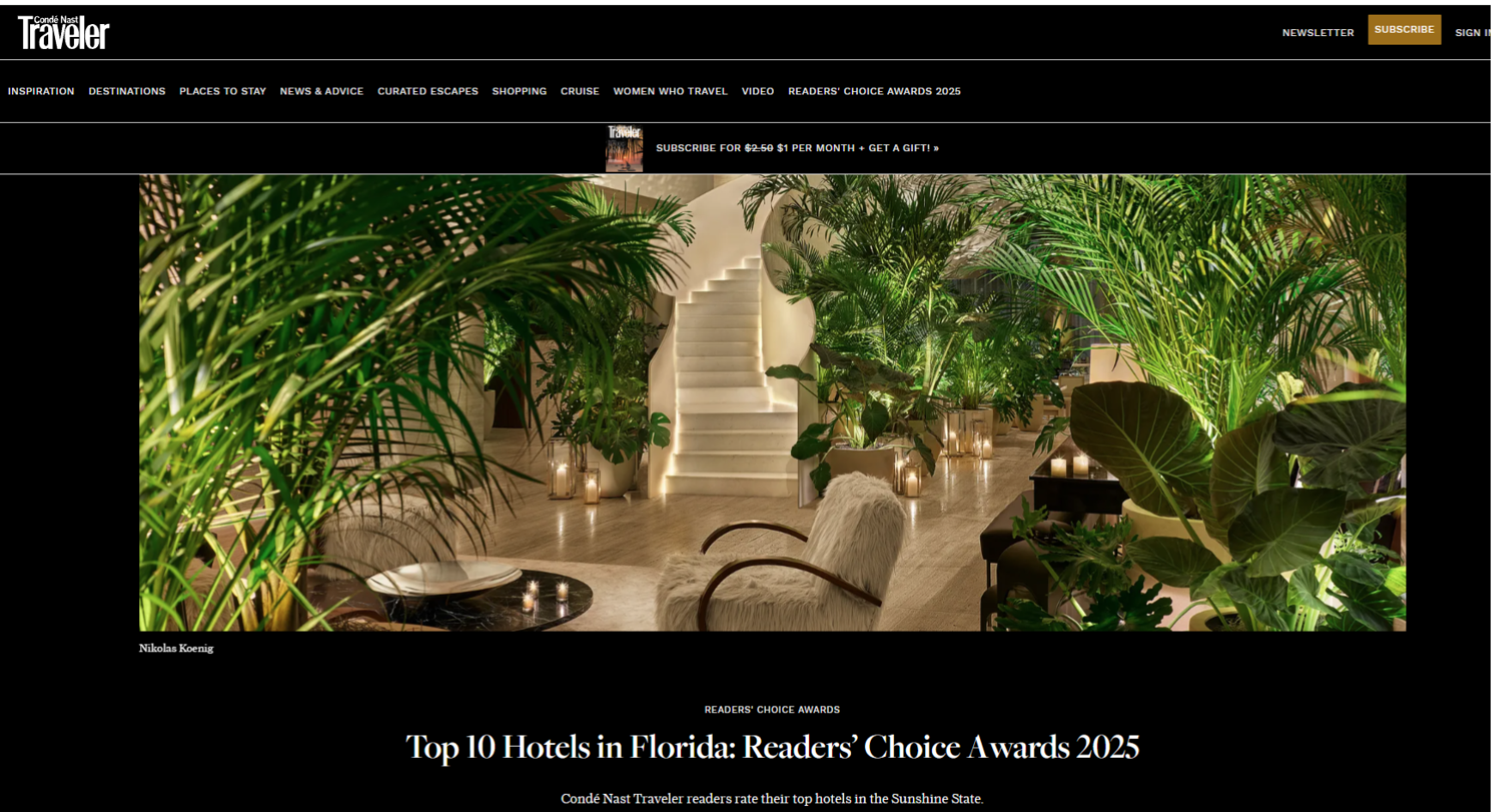 Condé Nast Traveler has announced its 2025 Readers’ Choice Awards, showcasing the Top 10 Hotels in Florida (outside of Miami) — and several CFHLA member properties made the list!