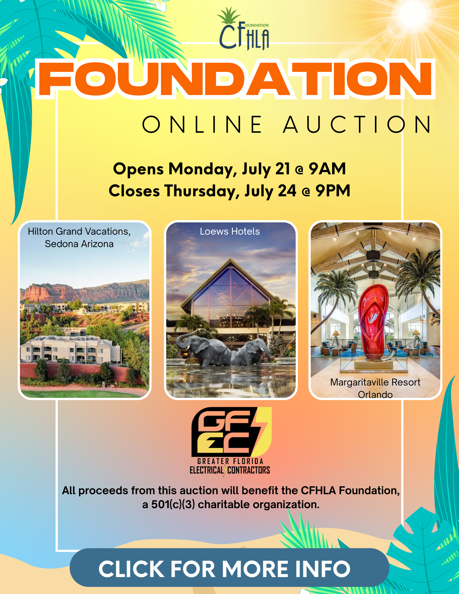 The Online Auction supporting the CFHLA Foundation - a separate 501(c)(3) non-profit organization that serves as the "Giving Arm" of CFHLA - opens next Monday, July 21 at 9 AM!