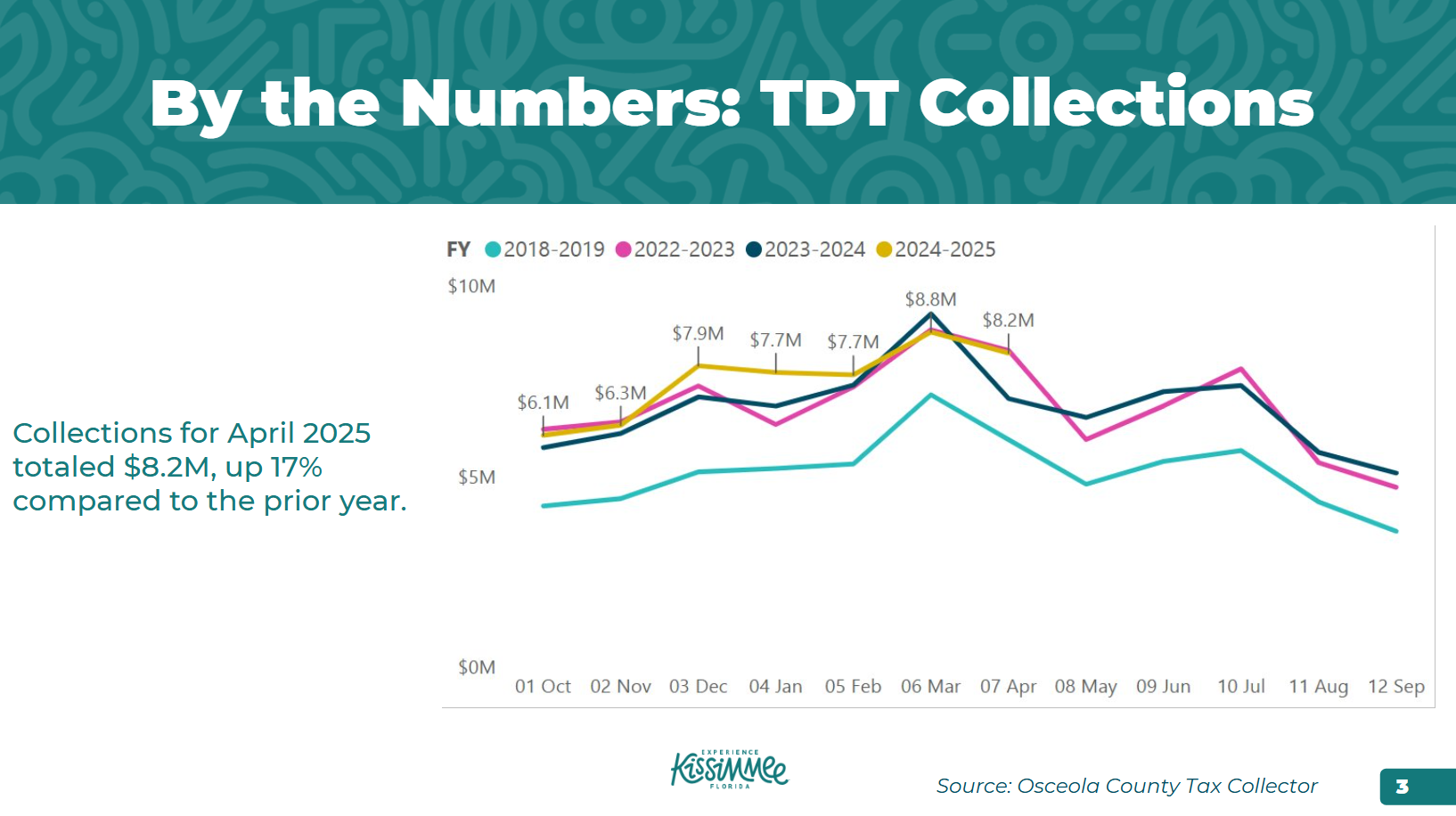 Osceola County collected $8.2M in TDT for the month of April 2025, representing a 17% increase from April 2024.