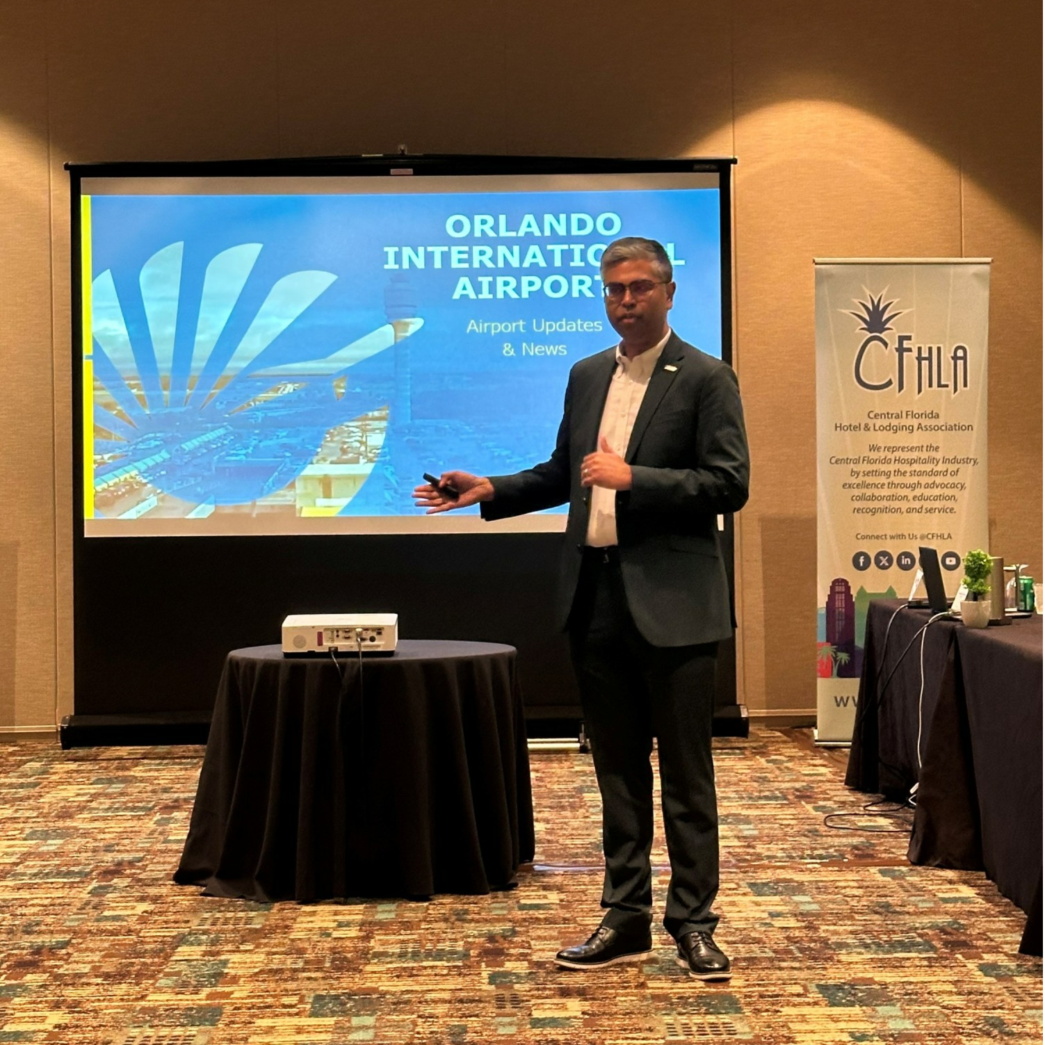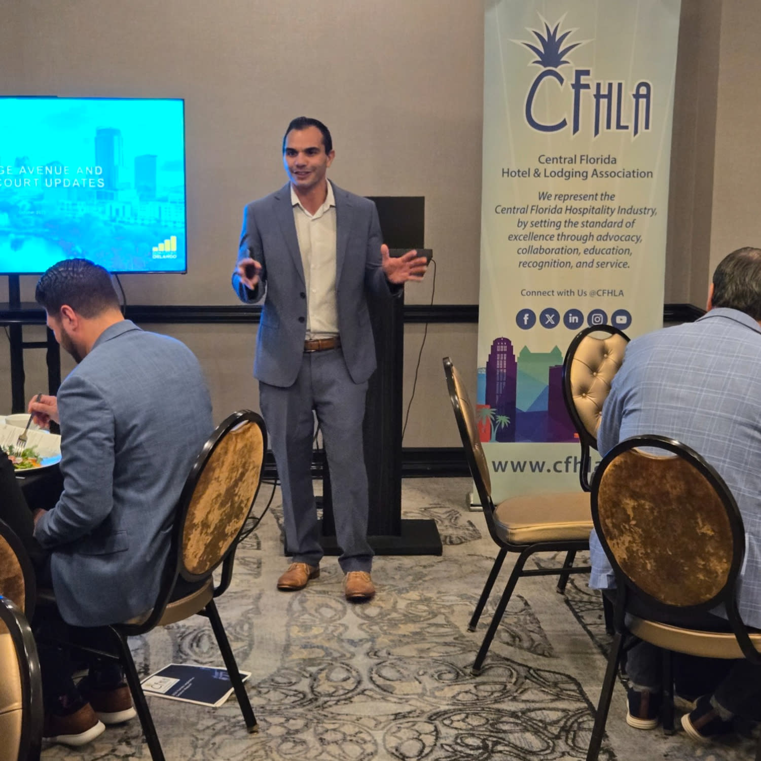 The meeting featured an insightful guest presentation from Darren L’Appanna, Air Service and Business Development Manager at the Greater Orlando Aviation Authority (GOAA). In addition, members heard valuable updates from key hospitality leaders, including: