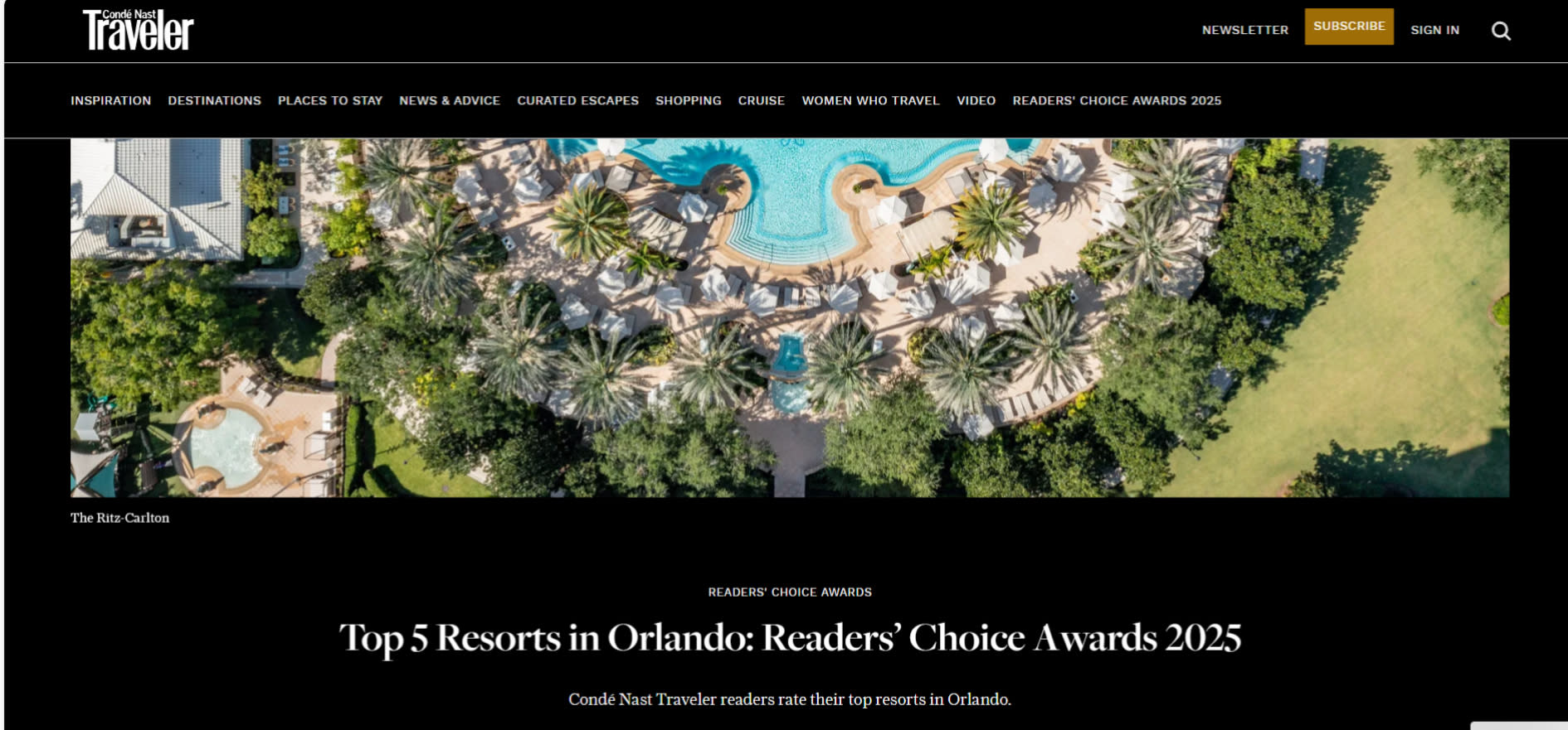 Congratulations to several of our CFHLA member properties for being voted by Condé Nast Traveler readers as the Top 5 Resorts in Orlando.