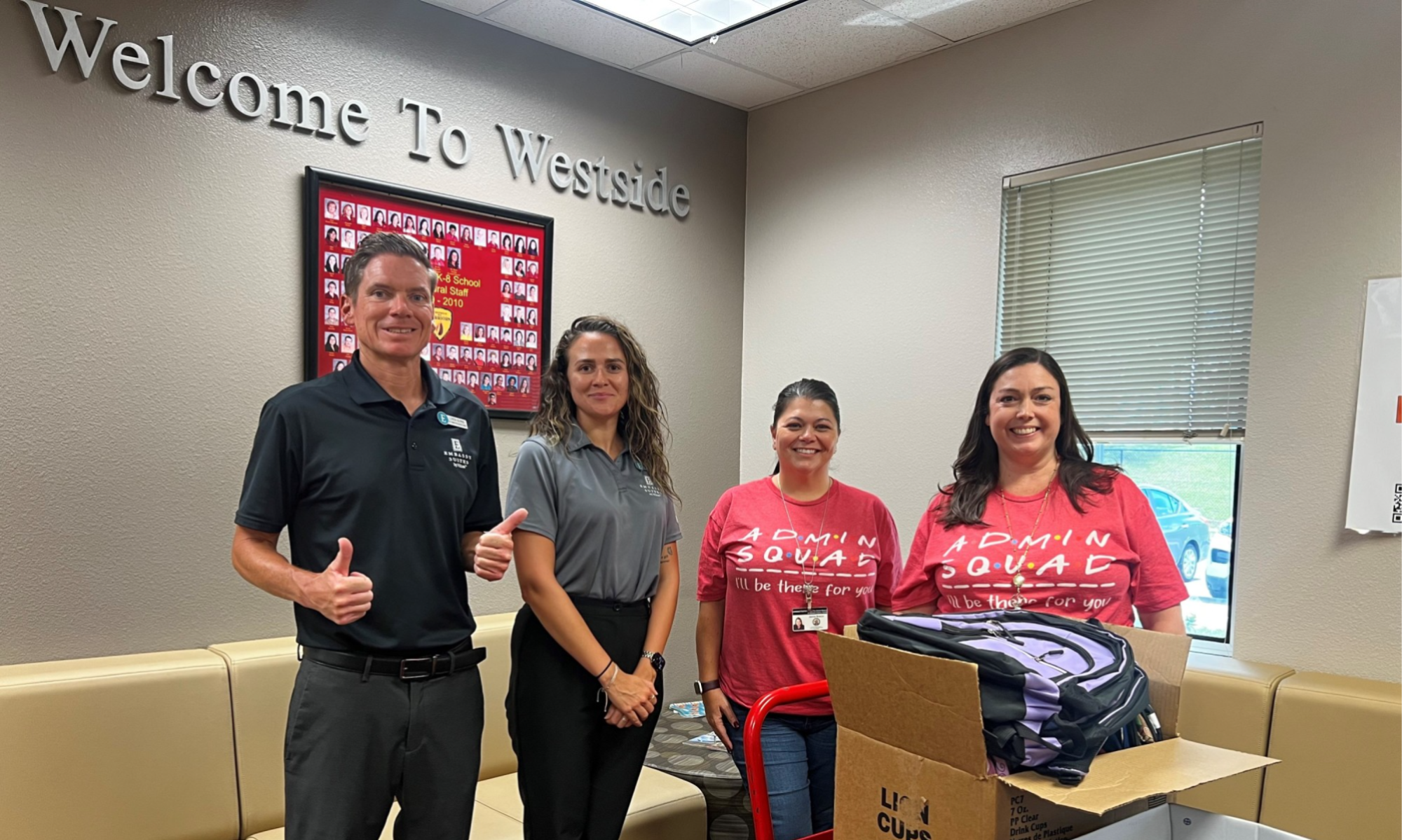 Loren Burns, Senior Human Resources Manager, and Alyssa, HR Coordinator, dropped off eight boxes of much-needed classroom supplies to help teachers and students start the year strong.